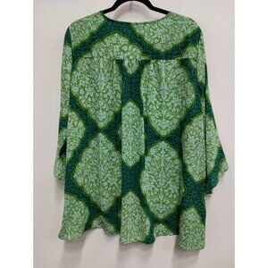 Beautiful By Lawrence Zarian Womens BOHO Blouse Size 1X Green Printed 3/4 Sleeve