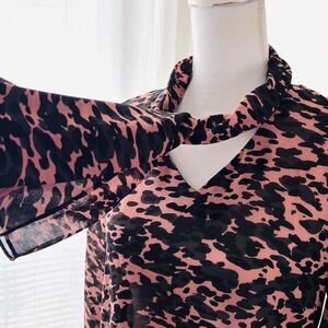 Beautiful CAbi Pink & Black Ruffly Chiffon Blouse with Attached Neck Scarf Sz XS