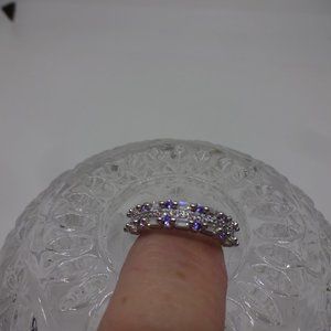 Beautiful "CUBIC ZIRCONA & AMETHYST" Handmade Silver Band Size 7.75 #499