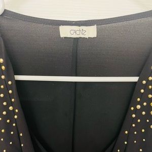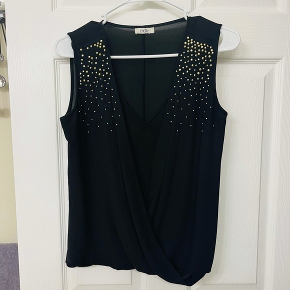 This essential blouse is designed in lightweight, airy georgette and has as wrap-effect for the ultimate in desk-to-dinner sophistication. There might be stones missing but not noticeable. Also there is no size tag but I wear a size Small. Itβs from smoke and pet free home. Good condition.