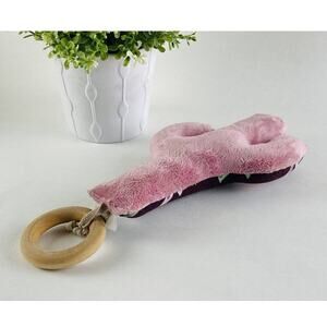 Beautiful Cactus Cloth Teething Rattle Wood Ring Purple Floral Natural Prickly Pear