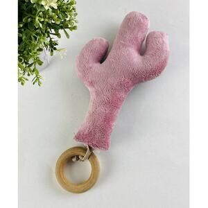 Beautiful Cactus Cloth Teething Rattle Wood Ring Purple Floral Natural Prickly P