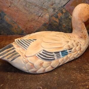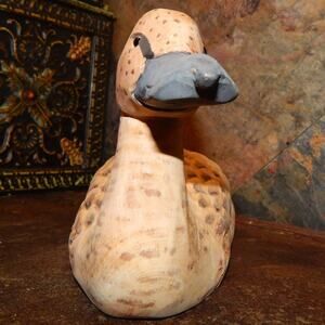 Beautiful Carved Burned & Painted Unmarked Wood Duck Sculpture