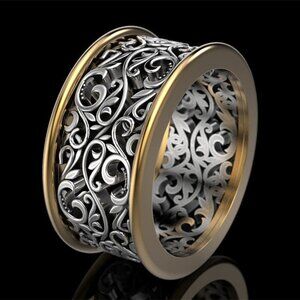 ⚡ Beautiful Carved Dainty Double Layer Wide Vintage Ring Women/Man, PD732