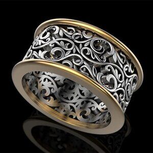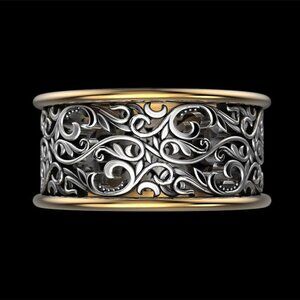 "Beautiful Carved Dainty Double Layer Wide Vintage Ring for Women/Man, PD732
