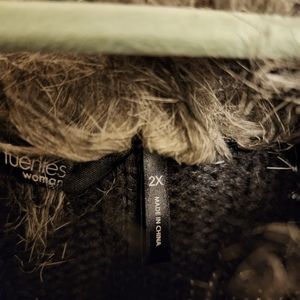 Beautiful Charcoal long cardigan sweater with fur collar.