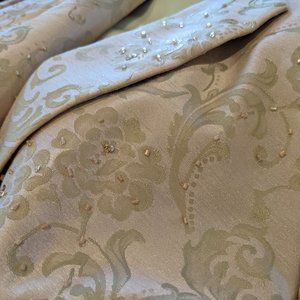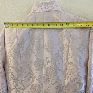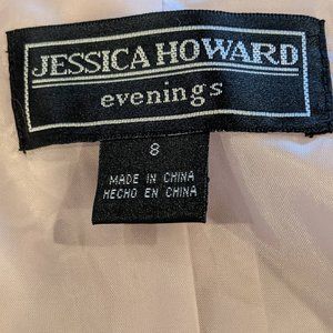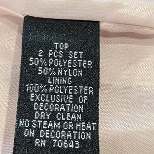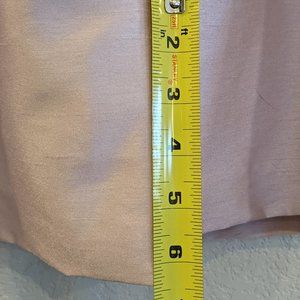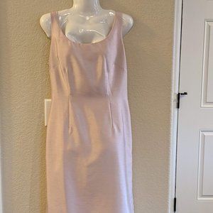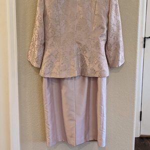 Dusty Pink Sheath Dress and Flattering Jacket. Gorgeous on. The pictures tell the story. It is in like new condition. The length is just below the knee if you are 5'5" like me. I will have to say that it is not vanity sized and possibly fits more like a size 6, vanity sized. The slit in the back is 6.5" long, which I tried to show in a photograph. The jacket has just the right amount of sparkle to make sure you light up the room!!!