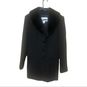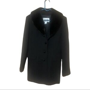 Beautiful Classy French Black light coat with faux fur Size 3! In Excellent Used Condition it’s 100 percent Wool