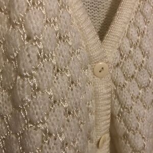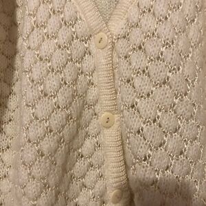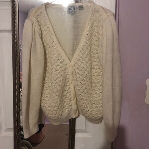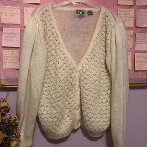 Beautiful Classy Vintage Cottage White Ivory Cream Crochet Knit button Sweater