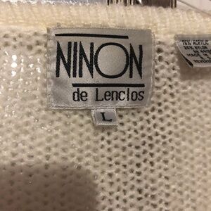 This vintage white ivory cream crochet knit sweater by Ninon De Lenclos is a beautiful and classy addition to any woman's wardrobe. The chunky knit style, long sleeves, and crochet accents add a touch of elegance to this cardigan. The sweater features a button closure and is perfect for the winter, fall, or spring seasons. this sweater is a classic and timeless piece that exudes beauty and sophistication.