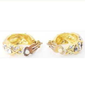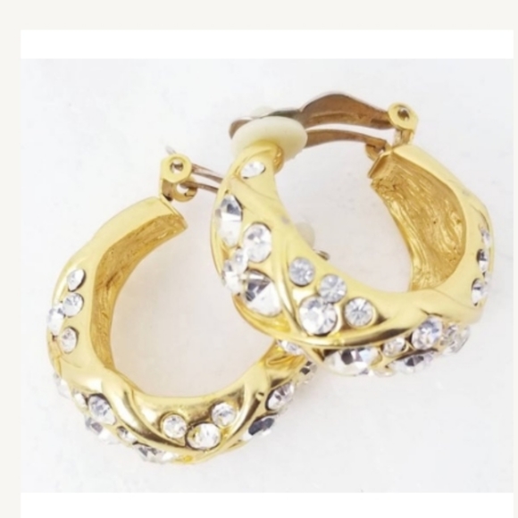 Beautiful Clear Rhinestone Hoop Style Clip Earrings Unsigned