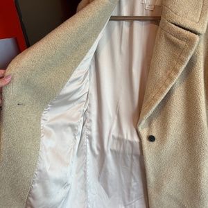 Beautiful barely worn Club Monaco teddy coat in size extra small. Front button closure. Couple of dark spots on coat due to the wool thread - as seen on photos.