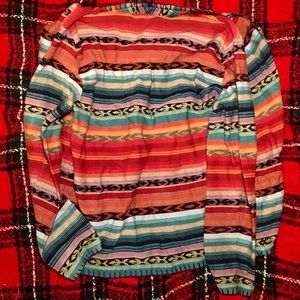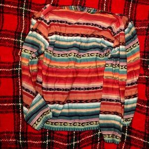 Colorful jacket/blazer with vibrant colors, pockets, and a desert feel! A few loose threads but in pretty good condition!