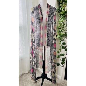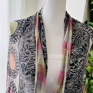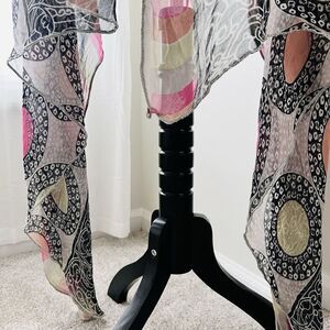 Beautiful Colorful Pink & Black Medallion Boho Long Flowy Chiffon Wrap One Size