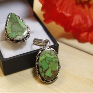 Beautiful Green Copper Turquoise Ring and Pendant Set
