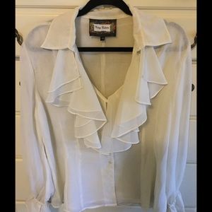 Double layered throughout. Beautiful with my lace skirt listing. 💯% polyester. Worn once - too big but oh, so pretty! Bought on sale for $80 SAN Antonio Rodeo in March. I found receipt for this - $80! Make a reasonable offer!