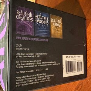 Set of three Beautiful Creatures books. Includes Beautiful Chaos, Beautiful Darkness, and Beautiful Creatures. Features gold, blue, and purple covers. Near-