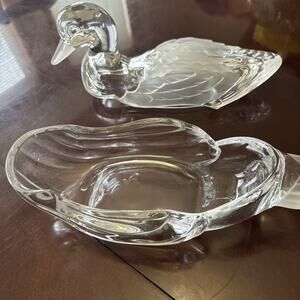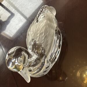 Beautiful Crystal Duck Shape Trinket Dish w/ Lid, Clear and Frosted 10" x 6"