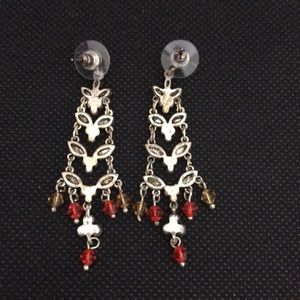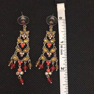Gorgeous silver tone earrings with crystals/ rhinestones. It is about 2.5 inches long. Never been worn.
