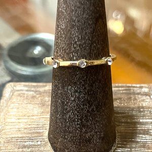 Crystal stones travel around this modern gold-vermeil ring, catching the light from every angle. Size 7