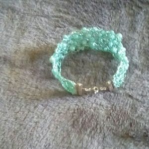 Gorgeous Wire and Glass Pearls Crocheted Bracelet. Handcrafted by Four
