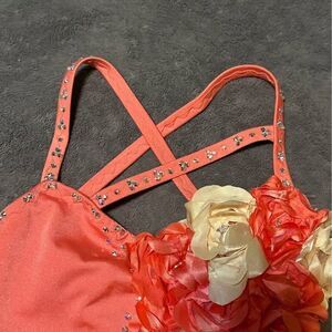 Beautiful Custom Coral Floral Bedazzled Dance Recital Leotard Costume