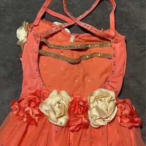 Beautiful Custom Coral Floral Bedazzled Dance Recital Leotard Costume (Size: Adult XXS/ Large Child)