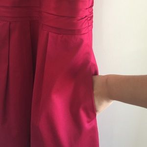 Red knee length bridesmaids dress. With pockets and flattering A line skirt. Priced to sell. Accepting offers!
