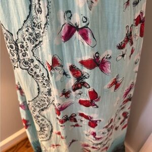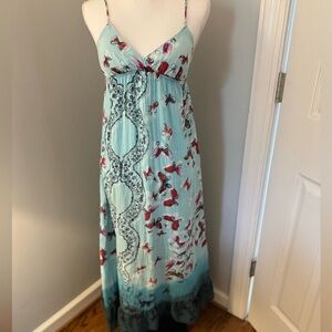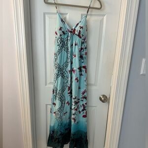 Beautiful Derek Heart Turquoise Butterfly Maxi Dress w/padded cups Size M