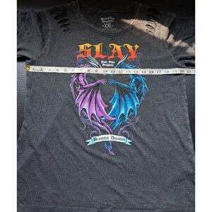 Beautiful Disaster Women's Slay Slash Shoulder Tee Dragons Size XXL