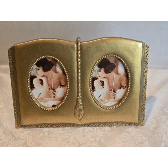 Beautiful Double Oval Standing Vintage Picture Frame, Resin and Wood with Gold G