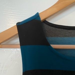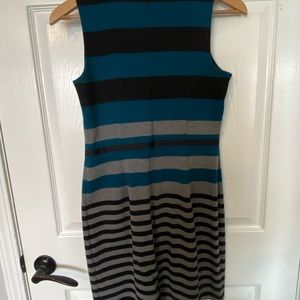Black, dark blue, and grey dress! Never worn, perfect fit! Zips down to lower back.