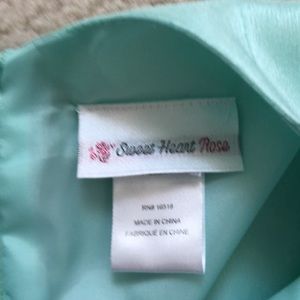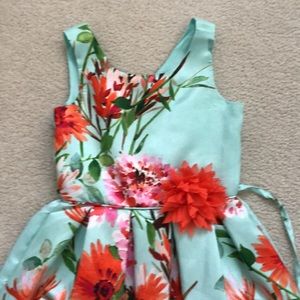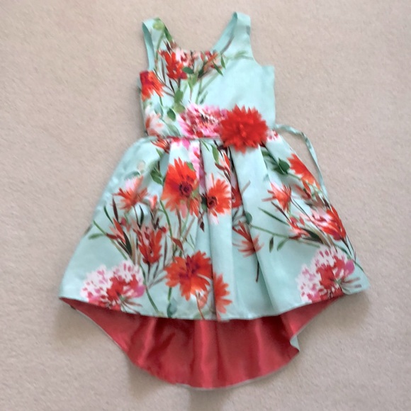 Light Green Dress with Orange flowers. Tool liner. High low style dress. Size 7
