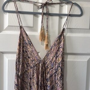 Very beautiful women’s maxi dress in great condition. No brand/size tag. Looks like S/M. It has metallic gold print on it.