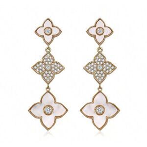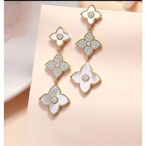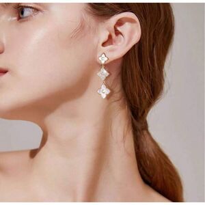 Gorgeous cream and gold colored drop pierced earrings that sparkle and shine. Adorned with rhinestones. Measures 1 3/4 inches long from top to bottom and approximately 1/2 inch wide. Beautiful delicate and feminine.