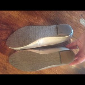 Beautiful Elaine Turner flats in a light gold with gold buckle. Excellent condition and only worn a handful of times (purchased while pregnant bc I needed a larger shoe at the time so they weren't worn that often).
