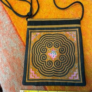 Beautiful Embroidered Black and Brown Fabric Cross Body Bag
