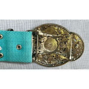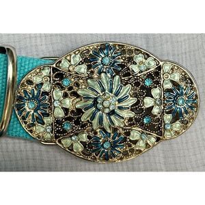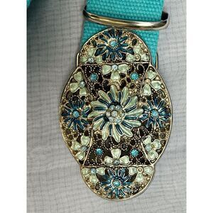 Beautiful Enamel and crystal Belt Buckle on a Wide Turquoise Belt - size 11