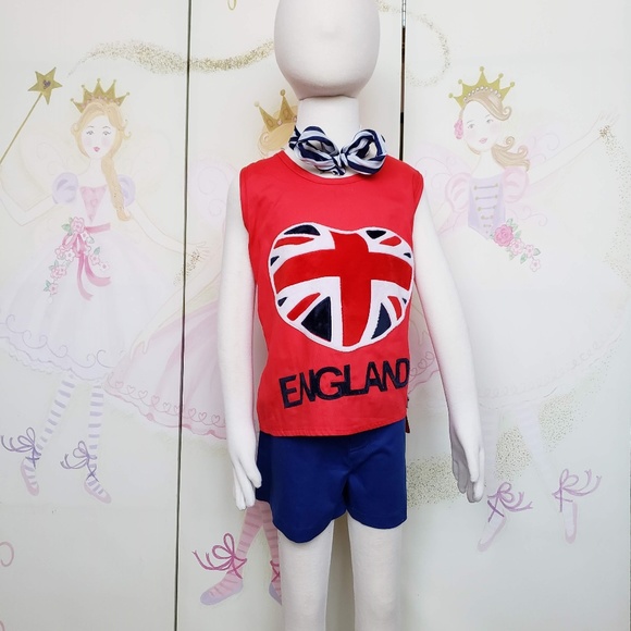 Amazing Plush Patch. Beautiful England flag with detailed ribbon on the back to the top. Shorts are stretch fabric, making them very comfortable. The set includes a complementary headband accessory that can be use as bracelet, necklace, and many other.