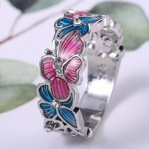 Beautiful Eternity Anillos Colorful Flower Butterfly Rings for Women, PD113