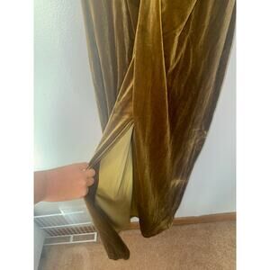 This Lulus maxi dress is a stunning addition to any wardrobe. The dress features a flattering twist-front design, creating a beautiful silhouette. The olive green velvet fabric adds a touch of luxury and sophistication.