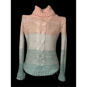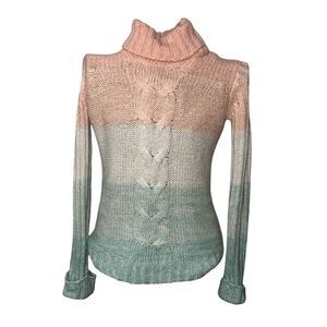 Beautiful FENN WRIGHT MANSON Women’s Turtleneck Sweater Size S Peach Cream Green