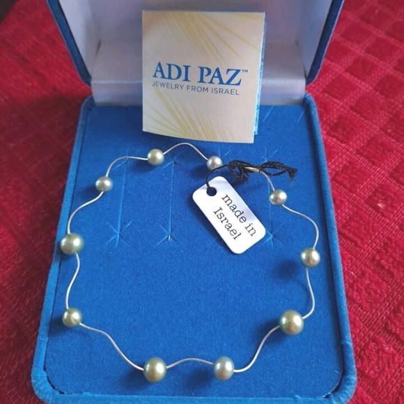 Beautiful Fine .585 14K YG & Pistachio Pearl ADI PAZ Wavy Wire Bracelet
