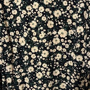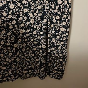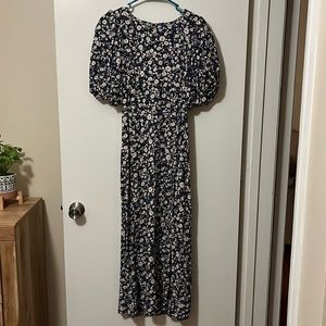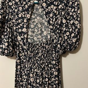 Perfect for Spring! Floral and blue dress. Bubble sleeves. Slit. Open back.