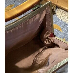 The bag has no tags or marks. It has a vintage look but feels new. I really do not know the age or history of this piece. Just selling it for the beauty it is.