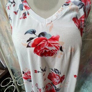 ๐Beautiful Floral Red Roses Long Sleeveless V- Neckline Plus Size Top