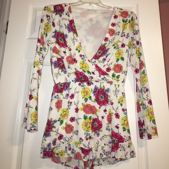 Only ever been worn once!! It's in perfect condition! The romper has long bell sleeves! Super cute and trendy!!