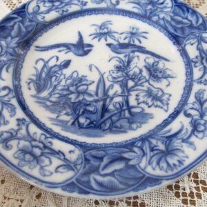 Beautiful Flow Blue Plate with Birds Cauldon England Flow Blue Aesthetic English
