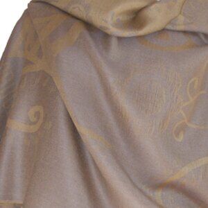High quality baby alpaca and silk shawl. It's dark red close to burgundy in color and has flower prints on it. Made in Peru.