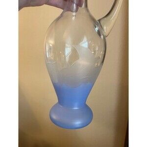 Beautiful Frosted Blue Etched Decanter and Wine Glasses